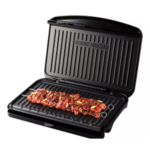 The George Foreman 25820 Large Fit Grill is compact yet spacious. You get surprisingly large grill plates on quite a small appliance, fitting up to 10 portions. What’s more, you can store it standing up with the cord wrapped, saving a lot of precious cupboard space.