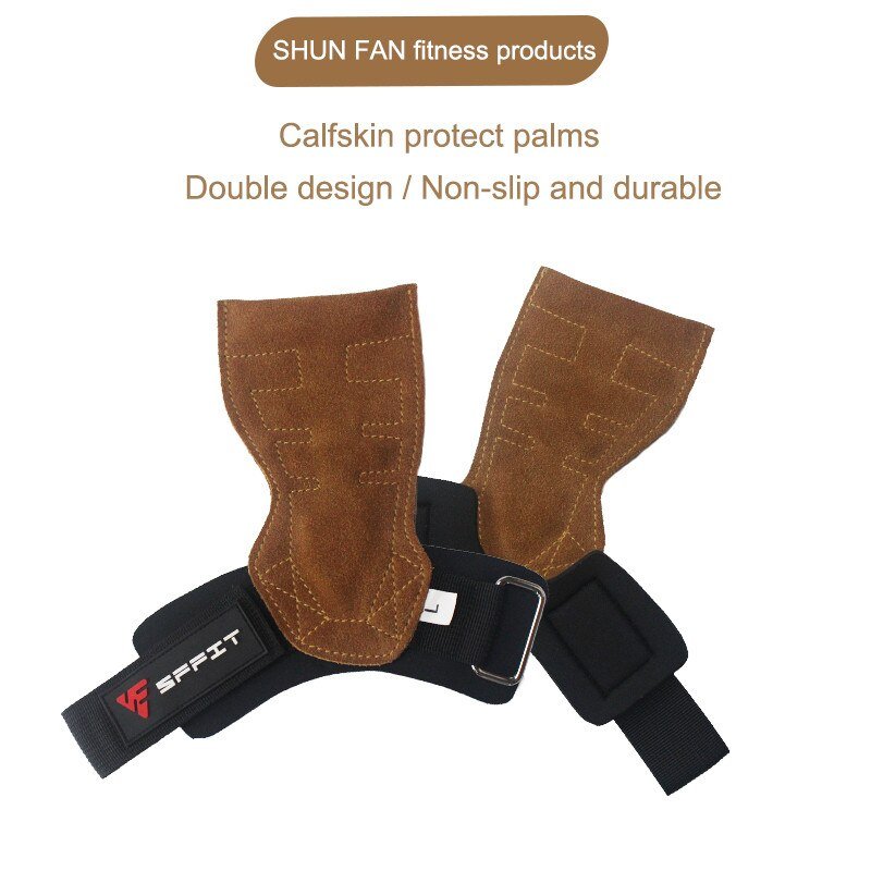 Gym Workout Gloves Fitness Leather Palm Grip Anti-Skid Hand Fingerless Grip Crossfit WeightLifting Deadlifts Wrist Wraps Support