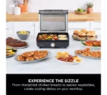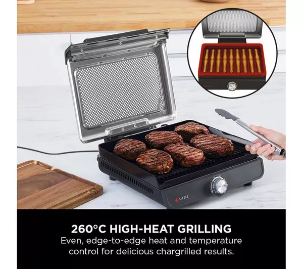 A hungry household is no match for this Ninja Sizzle grill. The grill plate reaches temperatures as hot as 260°C. It’s perfect for searing steaks, grilling vegetables and getting those lovely chargrilled cross-hatches on your burgers. But why stop at just grilling? The flat plate gives you even, edge-to-edge heat so you can whip up anything from bacon and eggs to fluffy pancakes and French toast. And the detachable lid helps prevent splatters and keeps smoke to a minimum, so you won’t be smelling last night’s dinner at breakfast.